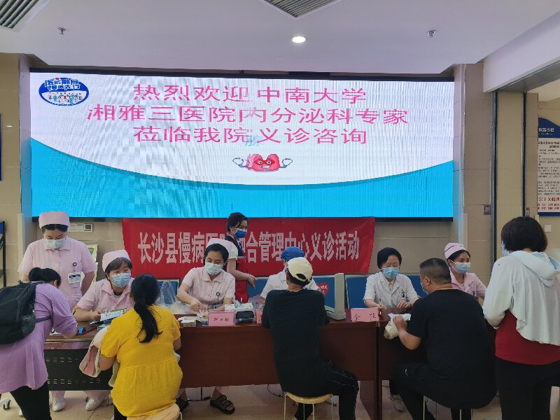 为深入贯彻学习习近平新时代中国特色社会主义思想和党的二十大精神,全面贯彻落实党中央《“健康中国2030”规划纲要》要求,普及健康知识,5月27日,内分泌支部党员在党支部书记金萍教授的带领下,来到长沙县星沙医院开展爱心义诊及健康科普活动。