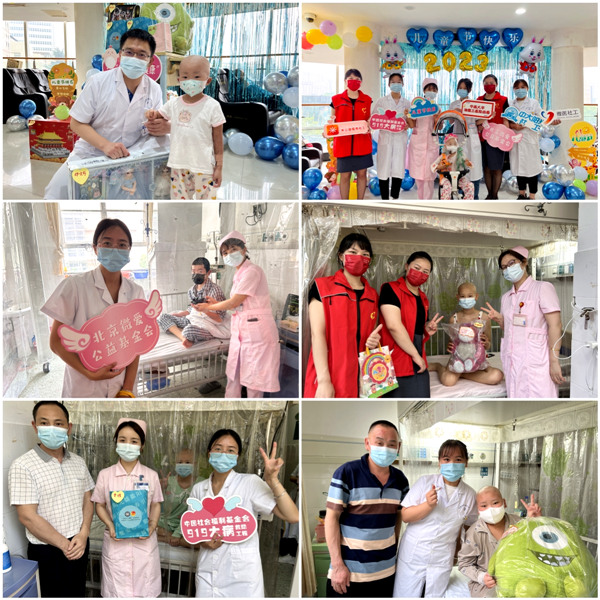 色彩缤纷的气球、各式各样的儿童节礼物、幽默有趣的小丑表演、欢乐洋溢的互动挑战……2023年六一前后,中南大学湘雅三医院团委、医务社工与志愿服务指导中心联合儿科五病区、雅医社工、中大阳光社工、米公益社工,在北京微爱公益基金会、中国社会福利基金会、湖南豪布斯卡物业公司、水滴公益等爱心公益伙伴的大力支持下,从患儿需求出发,精心策划开展了以“童行动 同行动·益童关爱 至善同行”为主题的病房关爱系列活动。院团委书记、医务社工与志愿服务指导中心主任程海威,儿科主任杨明华、儿科五病区护士长蔡骞、新生儿科护士长何利、儿科PICU护士长谭彦娟,以及科室医护人员、驻点医务社工、爱心志愿者和病房患儿及家属等百余人参与了活动。