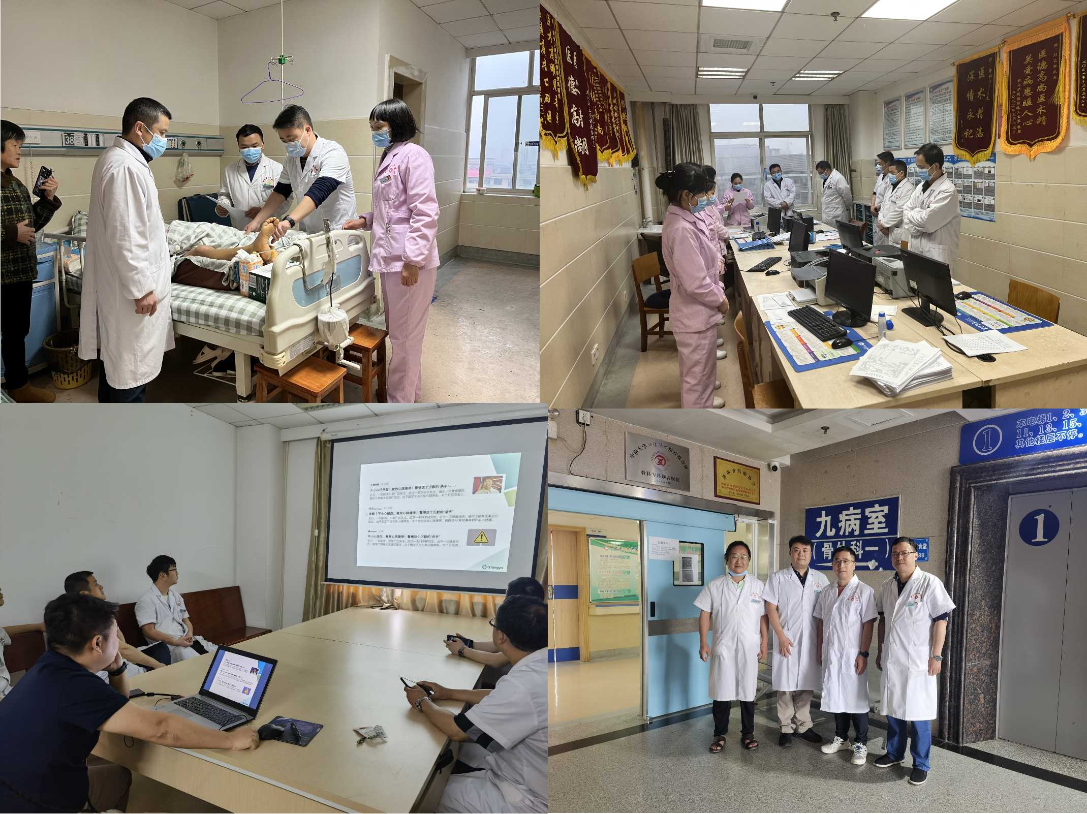 疼痛科郭刚文医生驻点麻醉科,他根据医院疼痛科发展历程,从学科特点、诊疗项目、队伍建设多角度对科室人员进行了疼痛亚专科建设培训,并协助当地麻醉医生至疼痛科进修。超声科章燕医生了解到当地超声科尚未开展超声介入,便积极与科室人员交流超声介入相关理念和技术,同时带教科室人员循序渐进开展了常规介入项目如胸腹腔积液穿刺引流,浅表肿块穿刺活检等。由于当地未建立血管外科,徐宏博医生被派驻在骨科,他接诊了大量骨创伤合并下肢深静脉血栓的患者,帮助骨科建立了“血栓危险程度评估—术前预防—围术期抗凝—术后预防复发”的全病程VTE防治体系,并协助当地医师至我院血管外科进修腔静脉滤器置入与回收手术,使当地深静脉血栓防治能力得到了明显提升。三位帮扶医生的言传身教为当地后续开展疼痛科、超声介入及血管外科打下了坚实基础。