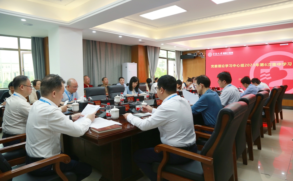 6月6日上午,中南大学湘雅三医院党委理论学习中心组在综合楼一会议室召开2023年第六次集体学习(扩大)会,深入学习贯彻习近平总书记在中共中央政治局第五次集体学习上的重要讲话精神和二十届中央审计委员会第一次会议精神。党委书记何庆南主持会议,全体在院院领导、党群和相关职能部门负责人、党总支书记参加学习。