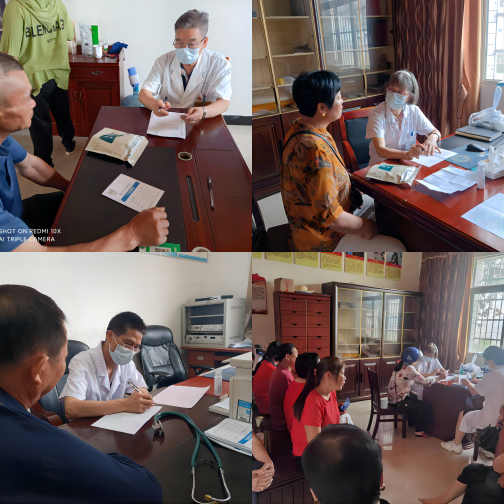 本次活动由医院工会联合第一分工会、第九分工会离退休工会小组共同组织。泌尿外科老专家蒋先镇、消化内科老专家沈守荣、老年科医生陈志雄和护士赵平、移植科博士范晓飞、消化内科博士陈学杰,第十二党总支书记杨华、工会常务副主席熊晓云、彭晓航等组成义诊团,在中国邮政宁乡市局的大力支持下,分别赴涌泉山村、合金村和黄材村开展义诊活动。