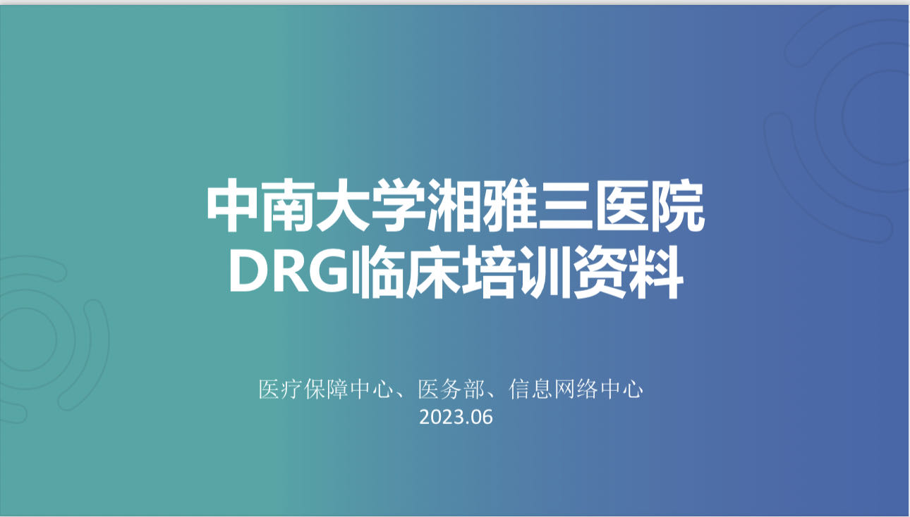 为全面贯彻落实党的DRG政策要求,按照《中共中央国务院关于深化医疗保障制度改革的意见》提出的“建立管用高效的医保支付机制”的要求,依据国家医疗保障局《DRG/DIP支付方式改革三年行动计划》、湖南省医疗保障局《湖南省DRG/DIP支付方式改革三年行动计划实施方案》,2022年8月中南大学湘雅三医院医疗保障中心牵头,联合医务、质控、评价、护理、财务、信息、资产等多部门建立DRGs项目组,在今年院领导的大力支持下批复专项资金加快DRG系统工程的建设,于6月20日全院上线。