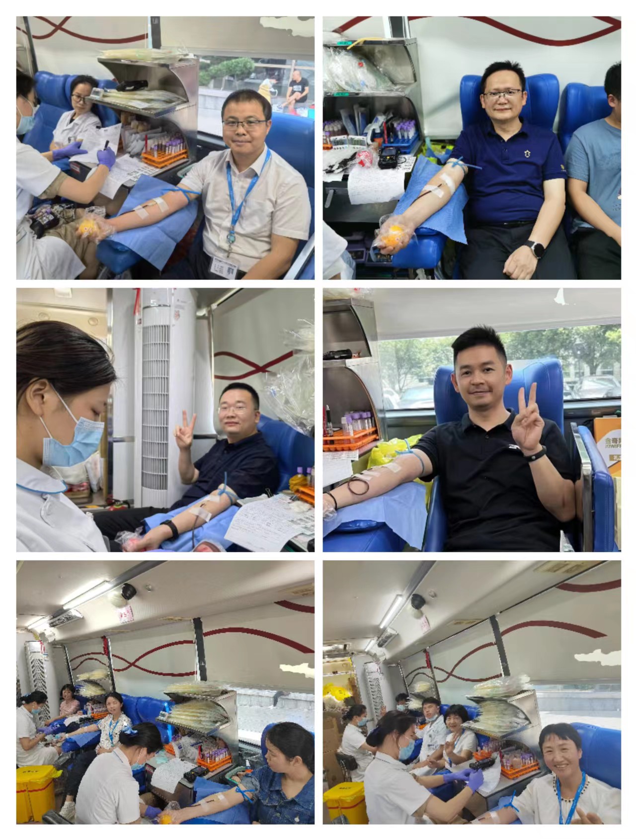 活动现场,在长沙市血液中心工作人员和医院青年志愿者的指引下,爱心献血者们在网上填写献血登记表格后,自觉排队配合工作人员进行初筛检验、血压测量、血样采检等工作。检查结束后,符合献血条件的同事分批次来到献血车上有序献血。他们中有多年一直坚持无偿献血的医务人员,也有即将毕业踏上工作岗位的年轻医务工作者。有人刚值完班顾不上休息,有人献完血又匆匆回到工作岗位上。大家都怀揣一颗炽热的爱心,为爱献出一臂之力。