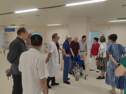 在基建科副主任杨智明的引导下,二十余名老同志们先后参观了门诊综合治疗中心、脑科中心、国际医疗部、专家门诊、消化内镜中心、日间手术病房、日间手术中心等处。每到一处,老同志们都认真听取情况介绍,对医院即将引进的一流医疗设备、全新的设计理念、人性化的服务设施和优美的医疗环境赞不绝口,感慨、欣喜、自豪之情溢于言表。在听到新门诊医技楼开辟了目前全省最大的16间日间手术室,日间手术留观床位超过100张,除大型检查外,患者基本可以在同一诊疗中心解决相关问题,能最大限度方便患者时,老同志们倍感振奋,竞相发言,回忆起医院发展历史长河中的点点滴滴和主要成绩,娓娓道来、如数家珍,现场气氛热烈。
