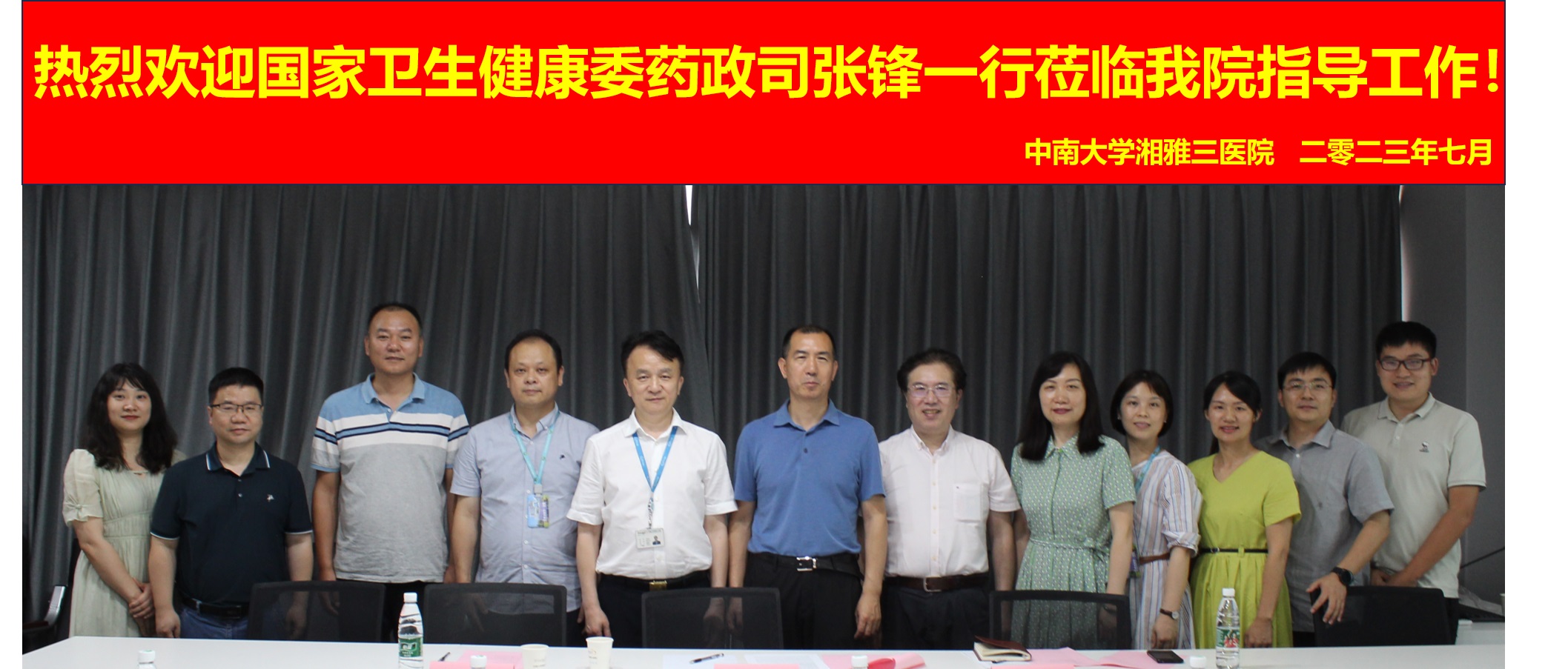 7月3日,国家卫生健康委药政司副司长张锋来湘雅三医院进行药品临床综合评价相关工作调研,湖南省卫生健康委药政处处长易平陪同调研。中南大学湘雅三医院党委书记、湖南省药品临床综合评价中心主任何庆南,中南大学湘雅三医院党委委员、副院长、湖南省药品临床综合评价中心副主任左笑丛,药学部副主任(主持工作)彭向东等参加了调研会。会议由易平处长主持。