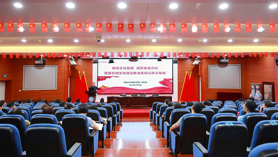 7月5日,中南大学党委委员、湘雅三医院党委书记何庆南在外科楼二楼多功能厅讲授题为《赓续文化基因,凝聚奋进力量——党建引领文化建设推进医院高质量发展》的专题党课。中南大学主题教育第三指导组组长、校党委党校常务副校长、组织部副部长赵永正到会指导。第九党总支副书记刘作良主持会议。