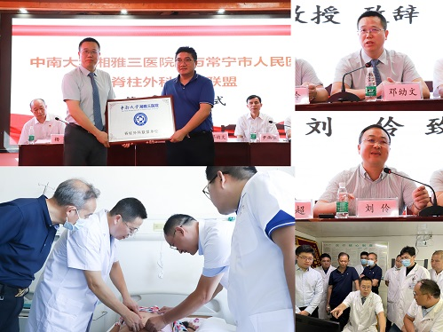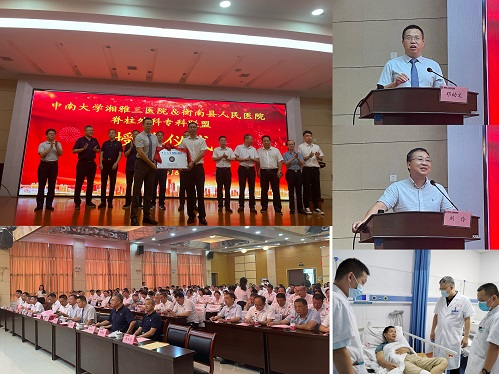 7月6日,中南大学湘雅三医院脊柱外科团队赴湖南省衡阳市常宁市人民医院及衡南县人民医院举行专科联盟授牌仪式,并开展学术交流活动。