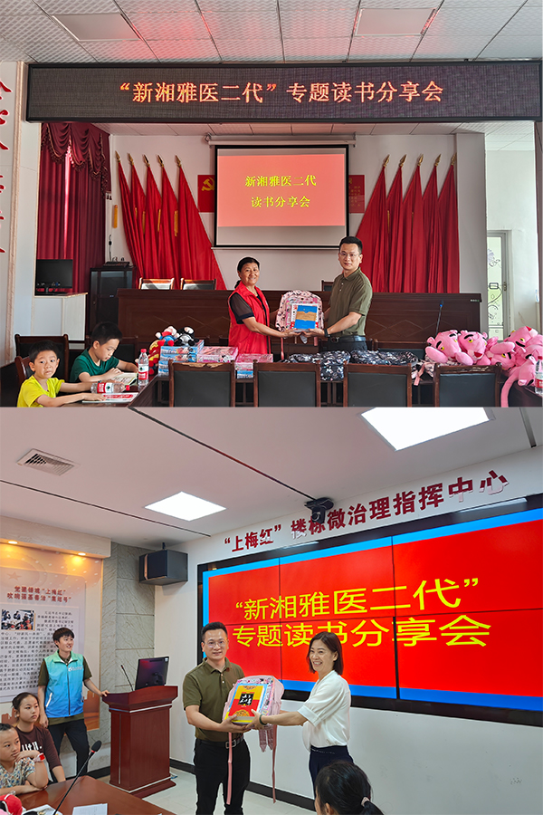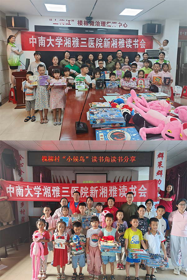 阅读少年,书香致远。为贯彻落实乡村振兴战略,助力乡村阅读,建设“书香中国”,7月15-16日,中南大学湘雅三医院赴娄底新化县上梅街道和娄星区槐柳村举行新湘雅“医二代”专题读书分享会,捐赠近1000册精品图书。活动由工会、团委(医务社工与志愿服务指导中心)主办,新湘雅读书会承办。工会常务副主席熊晓云、纪委副书记何君、团委委员戴萍萍以及5名“医二代”参加了活动,“医二代”和50余名“留守二代”在阅读上交流碰撞,孩子们增长了见识、启迪了心智。