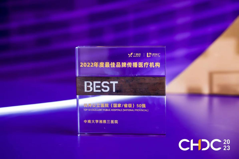 近日,由丁香园主办的第五届中国医院发展大会(CHDC)在杭州举行。会上,中南大学湘雅三医院荣获“2022最佳品牌传播医疗机构优秀公立医院(国家/省级)50强”。自2017年起,医院已5次入围该榜单50强。