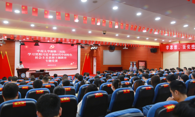 为扎实推进学习贯彻习近平新时代中国特色社会主义思想主题教育,8月1日,中南大学湘雅三医院党委邀请毛泽东同志纪念馆党总支书记、馆长阳国利同志以《以学增智、以学促干——学习感悟毛泽东思想》为题,讲授主题教育专题党课。党委书记、分党校校长何庆南出席致辞,党群部门负责人、党总支书记、党支部书记代表、第12期入党积极分子及2023年发展对象培训班学员参加学习。党委副书记、分党校副校长杨飞龙做主持。
