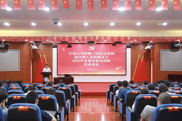 8月1日,中南大学湘雅三医院分党校在医院外科楼二楼学术报告厅举行2023年第12期入党积极分子及2023年发展对象培训班结业典礼,党委书记、分党校校长何庆南,党委副书记、纪委书记张劲强出席,党委办公室、各党总支书记及全体学员参加。会议由党委副书记、分党校副校长杨飞龙主持。