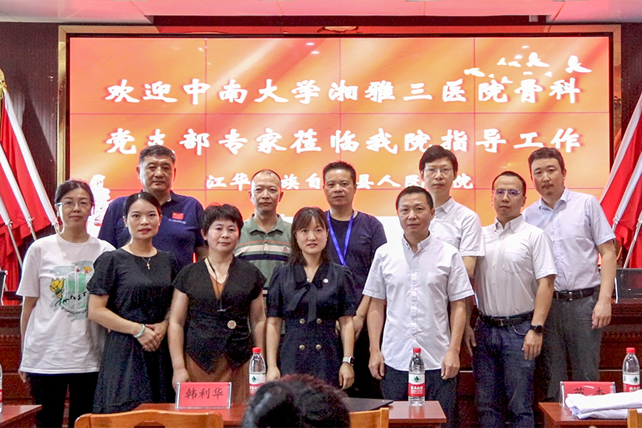 此外,江华瑶族自治县人民医院原党委书记李昌江、江华县第一人民医院党委书记李希俊也来到现场,对骨科党支部医护人员进行了慰问交流,同时也肯定了骨科团队在湘雅三医院党政领导的支持下,一直以来围绕医疗等领域对江华的帮扶。中南大学湘雅三医院张天一教授及医院驻江华帮扶人员李潇潇和张桓玮也参与了此次活动。