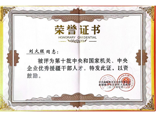 近日,中南大学湘雅三医院光荣函收中共新疆维吾尔自治区委员会、新疆维吾尔自治区人民政府表彰文件:耳鼻咽喉头颈外科刘火旺副教授因在援疆工作中表现优秀,成绩突出,被评为第十批中央和国家机关、中央企业优秀援疆干部人才,记功一次,同时还获评新疆医科大学第十批援疆工作优秀个人。