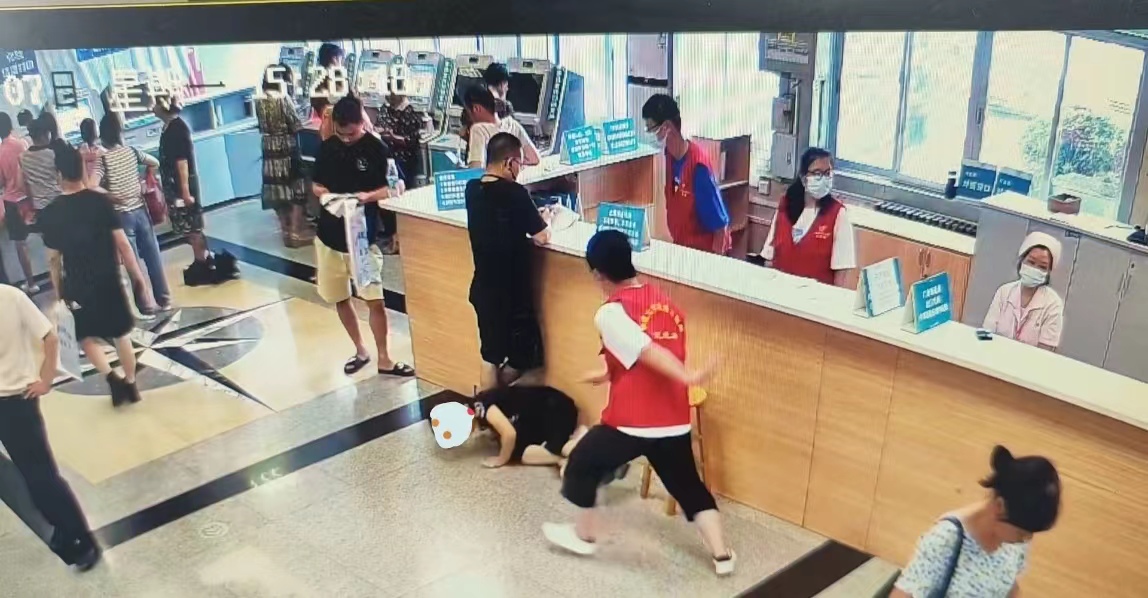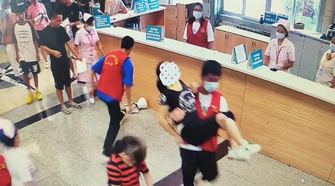 8月7日,一名女性患者在中南大学湘雅三医院门诊等待就医过程中突然晕厥,来自永州职业技术学院医学院的医学生志愿者李思翔迅速采取行动,与门诊医务人员一起将其抱送到急诊科救治。