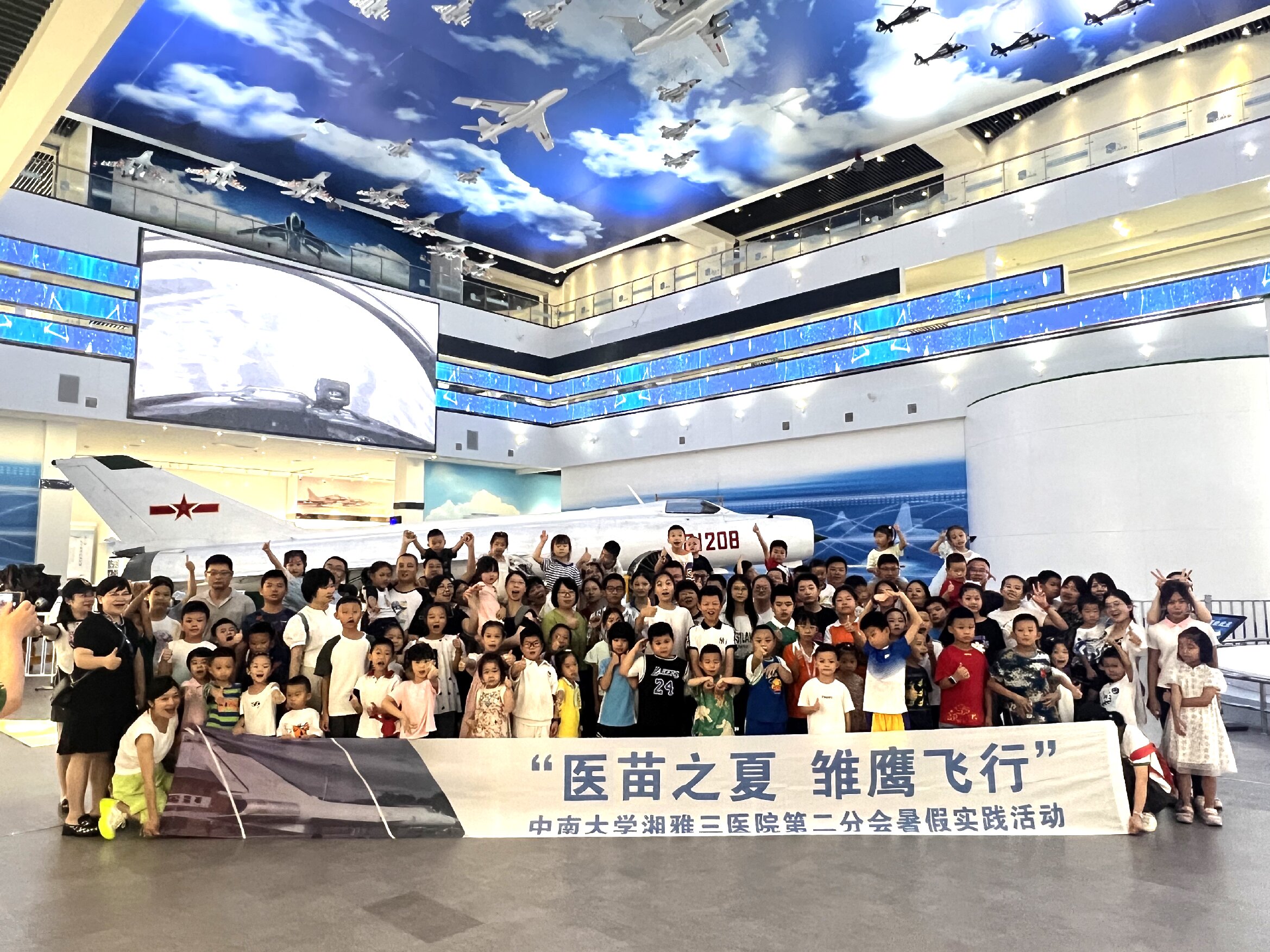 为给职工子弟提供优良的暑假社会实践体验经历,8月13日,中南大学湘雅三医院第二分工会组织140余名职工子弟进行“医苗之夏 雏鹰飞行”社会实践活动,实地参观湖南航空馆,零距离接触真实战机,沉浸式观看战机结构,体验航模飞机组装制作。