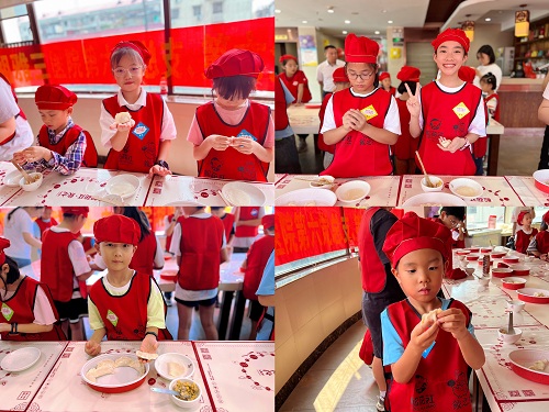 简单午餐后,小朋友们在新民路松花江饺子馆工作人员的带领下,了解了饺子相关文化。工作人员组织小朋友们一起先玩击鼓传花、马兰花游戏热身后将小朋友们分组,随后,小朋友们在饺子大师手把手的演示下,动手包饺子。学习、练习完成后进行包饺子比赛,经过激烈角逐,分小组比赛出小组冠军。小朋友们不仅了解了我国源远流长的饺子文化更加体验到了包饺子带来的快乐,小朋友们在学习中玩耍,收获颇丰。