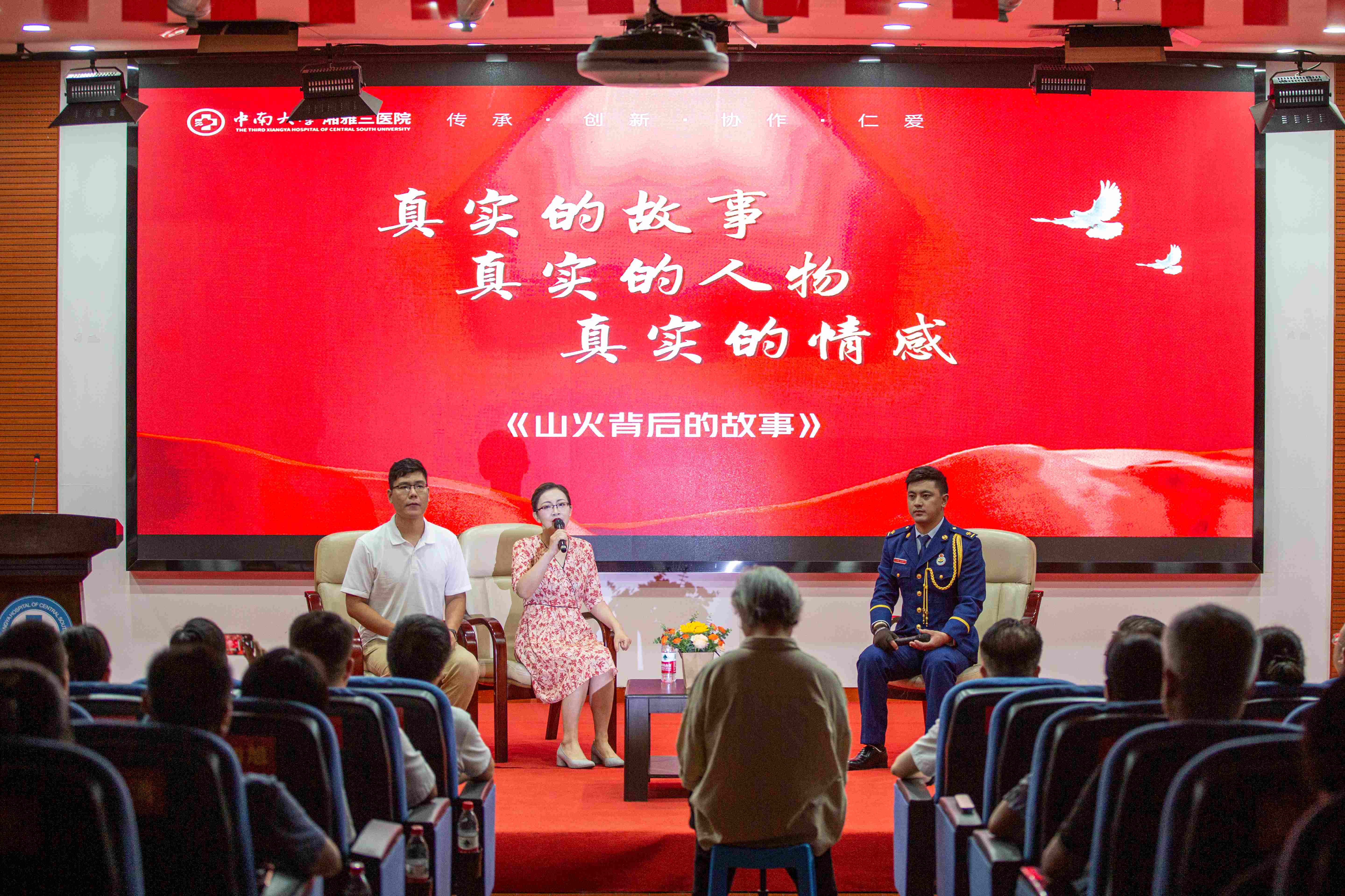 会上,来自四川森林消防总队阿坝支队的扎西同志,和医院参与伤员救治的医生代表一起,为我们再现了一场火灾背后动人心魄、令人动容的战斗。他们讲述的故事充满大爱,在场的每个人都感受到了医护人员和消防战士所共同拥有的精神品质——人民至上、生命至上。