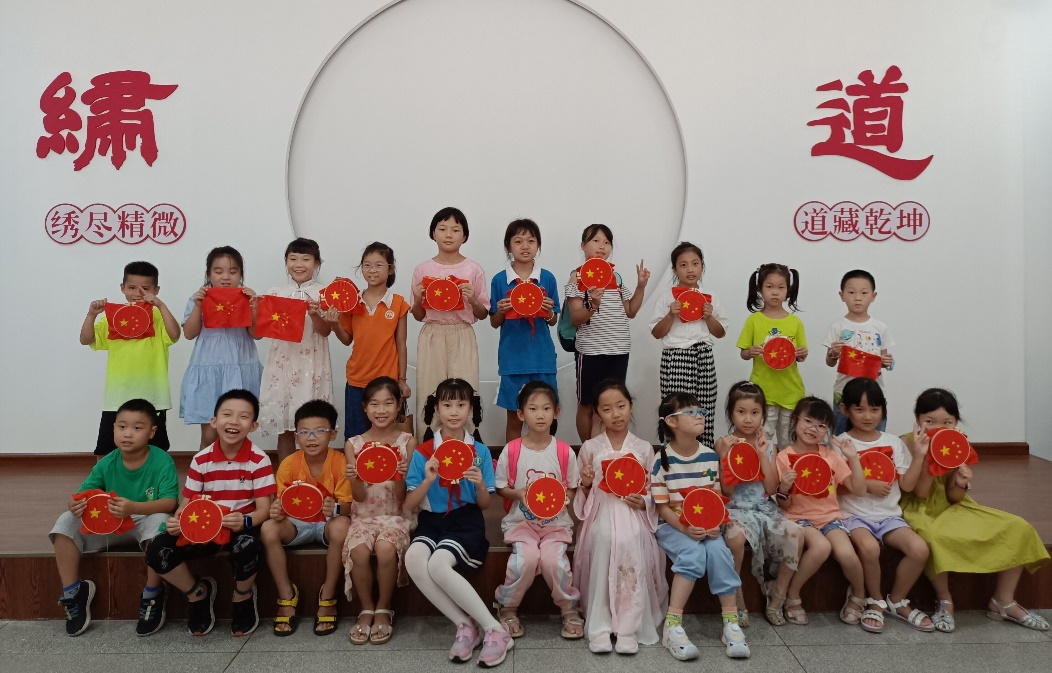 本次活动还近距离观摩了湘绣专家现场刺绣,湘绣师们时而飞针,时而引线,一幅幅精美的图案在大师的针法下慢慢呈现。最后,博物馆安排大家以家庭为单位绣制五星红旗,通过实践体验湘绣技能,小朋友们顿时化身“湘绣师”,专注而用心地绣出一幅幅庄严的五星红旗。