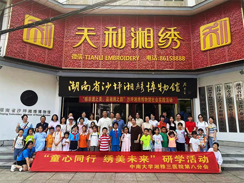 8月20日,中南大学湘雅三医院第八分工会组织职工及子弟开展“童心同行 绣美未来”社会实践活动,参观沙坪湘绣博物馆、学习制作绣制五星红旗,感受湘绣的独特魅力,沉淀湘绣的红色记忆。
