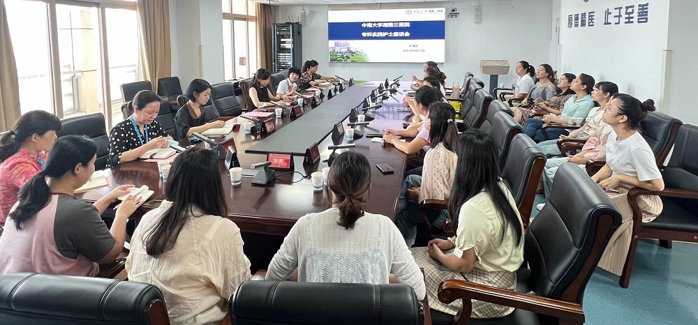 2023年8月31日上午,中南大学湘雅三医院护理部在外科楼19楼会议室召开2023年专科实践护士座谈会。会议由护理部副主任谢建飞主持,护理部成员、中华护理学会专科护士京外实践基地耳鼻喉专科学员、湖南省专科护士实践学员代表等40余人参加。