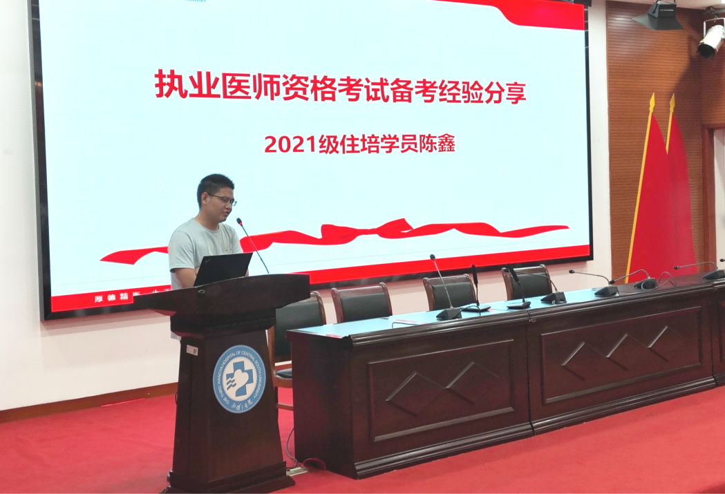 最后,2021级住培学员陈福军分享了英语学习经验及参与全科科研的体会。2021级住培学员陈鑫介绍了他的执业医师备考心得,分享了他在备考过程中的学习方法。
