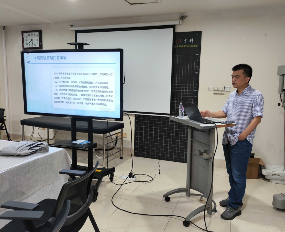 9月14日,中南大学湘雅三医院在脊柱外科召开“提升手术质量,保障患者安全”法治培训会议,医院法律顾问周宇君律师作专题分享,会议由脊柱外科主任邓幼文主持,脊柱外科全体医护人员参会。