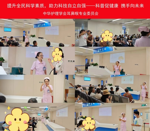 为贯彻落实党的二十大精神和学习贯彻习近平新时代中国特色社会主义思想,大力普及宣传健康知识,助推全民科学素质全面提升,中南大学湘雅三医院耳鼻咽喉头颈外科作为湖南省护理学会五官专业委员会主任委员单位,积极响应中华护理学会“提升全民科学素质,助力科技自立自强”的主题活动,于9月18日—9月24日开展“科普促健康,携手向未来”系列义诊活动。