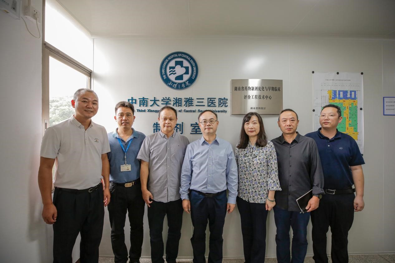 9月27日上午,中南大学湘雅三医院院长江泓、副院长左笑丛带领医院办公室、科研部、安全保卫部等相关职能部门前往医院制剂室进行现场调研。药学部副主任(主持工作)彭向东、副主任李佐军及制剂室全体人员参加。