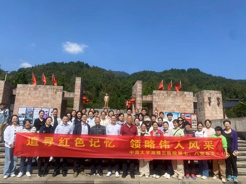 为深入学习贯彻习近平新时代中国特色社会主义思想主题教育,10月21日至22日,中南大学湘雅三医院副院长孙传政、第七党总支毛赤丹书记和第八党总支钟华书记,带领党员同志赴江西铜鼓、浏阳开展“追寻红色记忆,领略伟人风范”主题党日活动,接受党史教育,传承红色基因,进一步坚定理想信念,感悟革命精神。