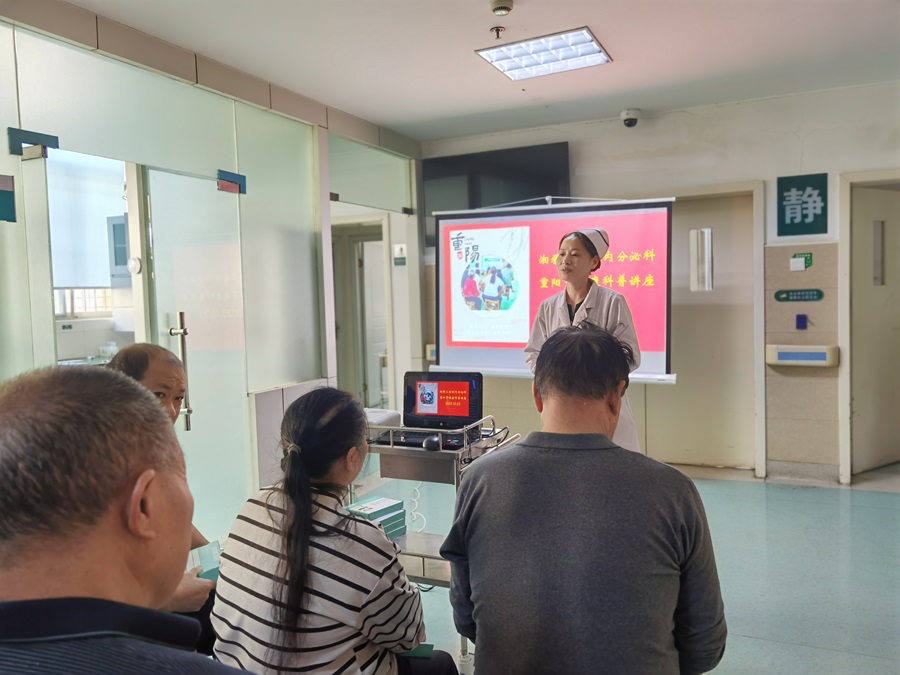中南大学湘雅三医院内分泌科是老年友善服务示范科室,为提高老年糖尿病患者自我管理能力,有效防控并发症,科室每月定期开展健康教育及科普讲座,开设“湘雅三医院内分泌科”微信公众号传播健康知识。此次重阳节关爱老年患者健康科普活动,不仅为患者朋友们送去了健康知识、拉近医护人员与患友之间的距离,更让广大患者认识到健康教育也是糖尿病治疗环节中的重要一项。在今后的工作中,全体新湘雅内分泌科将遵循尊老、敬老、爱老、助老的服务准则,持续提供卓越优质的医疗护理服务,让老年患者切实感受温暖和关爱,为保障和促进老年人健康服务事业做出更大贡献。