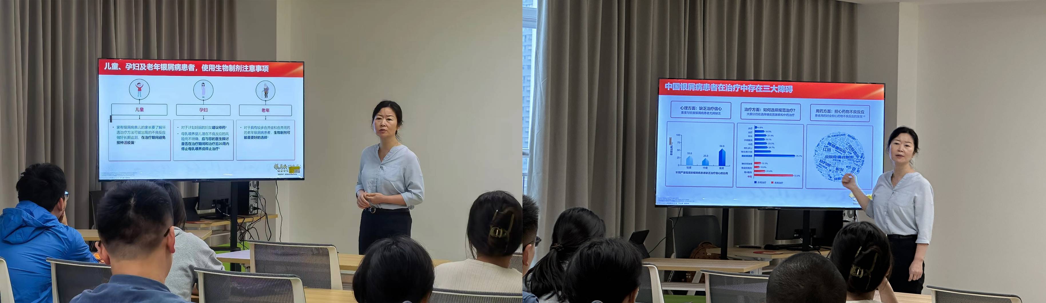 上午11点,陈静主任医师在义诊现场进行了以“银屑病”为主题的科普讲座,结合丰富的临床经验和国际上先进的疾病管理理念,为现场的银屑病病友生动讲解了如何进行疾病的自我管理,预防并发症。