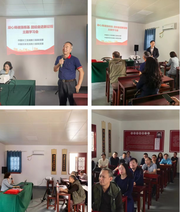 讨论环节,邓云龙带领党员们结合目前国内外形势及自身岗位特点开展了热烈讨论。他强调党员们要进一步坚定信仰,从国家、民族、人民大义出发,与中国共产党长期风雨同舟、休戚与共,充分发挥参政履职作用,切实肩负起新时代凝聚共识的政治责任和担当;在工作岗位上,传承弘扬“心忧天下、经世致用”的湖湘文化,团结奋进,脚踏实地,敢于担当,持续发光发热,为中南大学湘雅三医院的发展贡献自己的力量。
