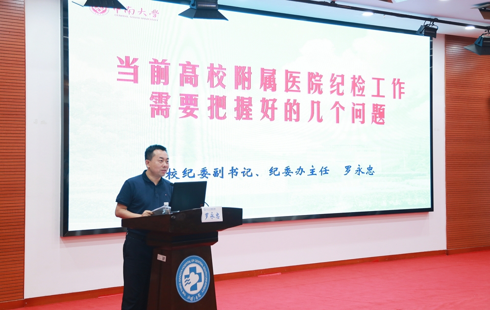 中南大学纪委副书记罗永忠以“当前高校附属医院纪检工作需要把握好的几个问题”为题进行授课。他认为要想做好高校附属医院纪检工作就要坚决扛起政治责任,精准把握高校附属医院的特点要求,做实做细政治监督,持续强化正风肃纪,纵深推进“三不腐”。再结合全国医药领域腐败问题和不正之风集中整治工作要求。他强调,一要把握准政治方向,做实做细政治监督;二要严格执纪执法,坚定稳妥查办案件;三要正确运用政策策略,实现“三个效果”有机统一;四要强化底线思维,有效防范风险隐患;五要注重工作实效,确保实现目标任务。