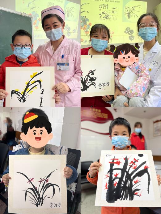 为让住院孩子们感受中国传统文化的魅力,体验国画的乐趣,2023年11月14日下午,院团委、医务社工与志愿服务指导中心联合五病区、公益组织开展了“冬天什么花会开”国画病房课堂活动,病房里水墨飘香。儿科五病区护士长蔡骞、驻点医务社工、湖南第一师范学院青年志愿者与住院孩子们在一起探寻国画之旅。