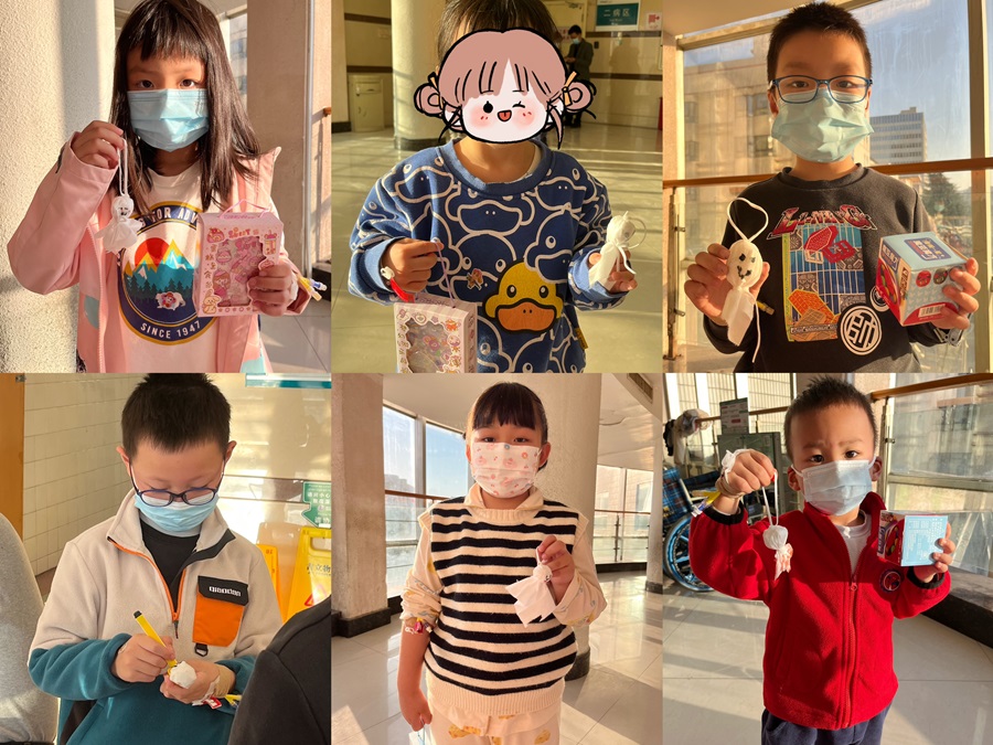 在活动中,住院患儿们展现出了极大的兴趣和参与度。通过这样的互动,孩子们不仅学习到了新知识,还在制作晴天娃娃的过程中体验到了创造的乐趣。这些活动有效地转移了他们的注意力,减少了对疾病和治疗的焦虑。陪护家属也对此次活动表现出了极大的支持和感激,他们认为这样的活动不仅为孩子们带来了知识和乐趣,还让他们感受到了社会的关爱和支持。