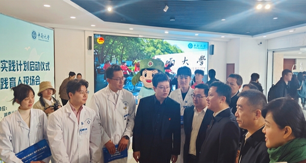 活动采用主题展览、现场路演等多样化形式展示实践风采,来自18所高校的21支社会实践团队在现场参与展示。其中,湘雅三医院牵头的新湘雅“知行者”健康促进与卫生治理社会实践博士团入选展示,并获得与会领导一致认可与肯定。当日上午,李志超、李景升、叶妙等领导来到了医院展台前,院团委书记、博士团负责人程海威代表团队向各位领导介绍了团队人员队伍、实践内容及主要成果等,获得领导嘉宾连连赞许。听到团队长期关心关爱县乡青少年及留守儿童心理健康、身体健康并采取了系列举措,李志超书记给予高度肯定与赞扬。