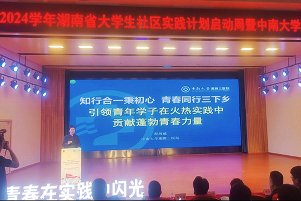 11月24日,为引领广大青年在实践中深入学习贯彻习近平新时代中国特色社会主义思想,进一步推动实施“时代新人铸魂工程”,2023-2024学年湖南省大学生社区实践计划启动周暨中南大学实践育人现场会于中南大学毓秀楼和声堂顺利举行。湘雅三医院在此次活动上荣获多项荣誉,并展示了良好风采。