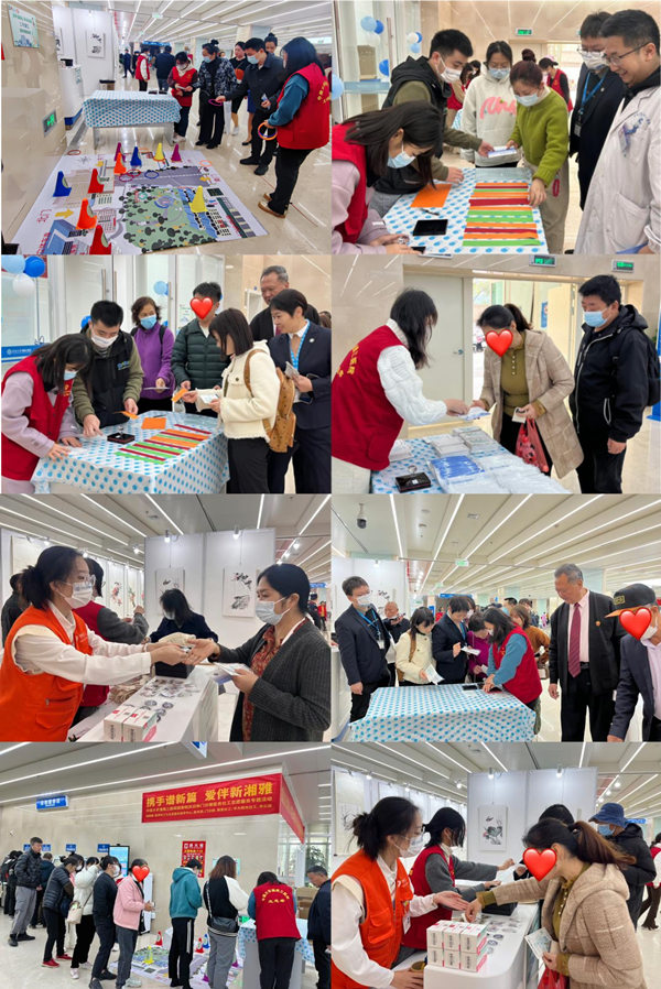 在游戏集市活动之外,院团委协同医务部、门诊部等部门组织职工志愿者及学生志愿者开展了“携手谱新篇、服务暖人心”志愿服务活动。来自医务部的王莎亚、程文炜等职工穿上红马甲,变身“新湘雅门诊志愿者”,门诊办谢卓组织来自湖南第一师范学院等学校的学生志愿者一同参与进来,大家热情、高效地为来院就诊的患者及其家属提供了志愿导诊、咨询答疑、协助挂号等爱心便民服务。