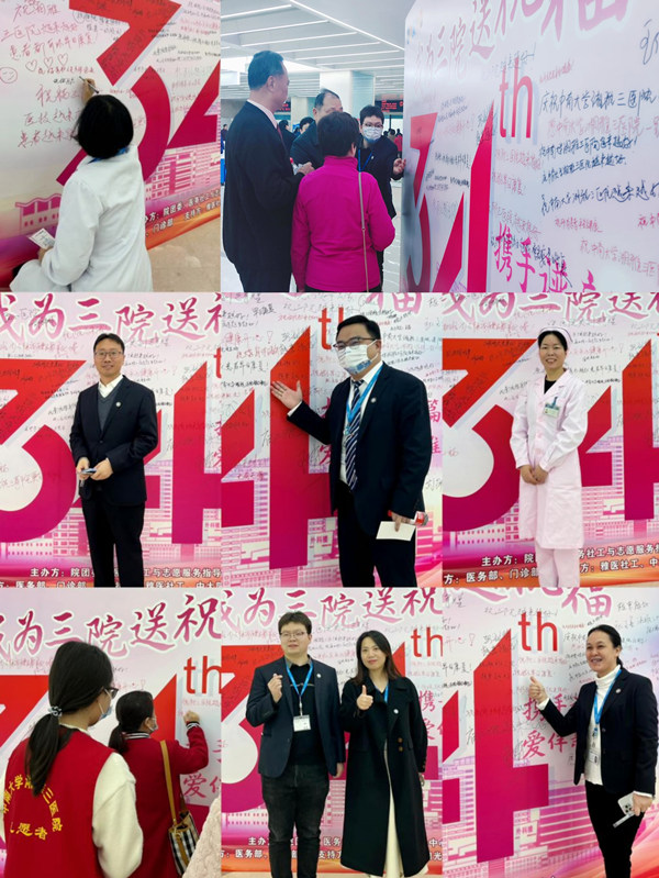 砥砺前行,栉风沐雨铸辉煌;踔厉奋发,再启征程谱新篇。11月28日,中南大学湘雅三医院迎来建院34周年暨新门诊楼启用这一重要时刻,院团委、医务社工与志愿服务指导中心携手医务部、门诊部、雅医社工、中大阳光社工、米公益及志愿服务团队在新门诊楼开展了“携手谱新篇·爱伴新湘雅”院庆日暨新门诊楼启用医务社工志愿服务专题活动。在院团委、驻点医务社工的精心筹划、组织下,“我为三院送祝福”打卡集章游戏集市吸引了医院老领导、老专家、医务工作者及广大病友等近1000人参与,同时院团委协同医务部、门诊部组织职工与学生志愿者为大量来院就诊患者及其家属提供了多方面爱心便民服务。杨伯勋、刘浔阳、郑兰香、黄祖发等老领导,院党委委员、副院长曹科,以及多部门、科室负责人来到现场参与了活动。