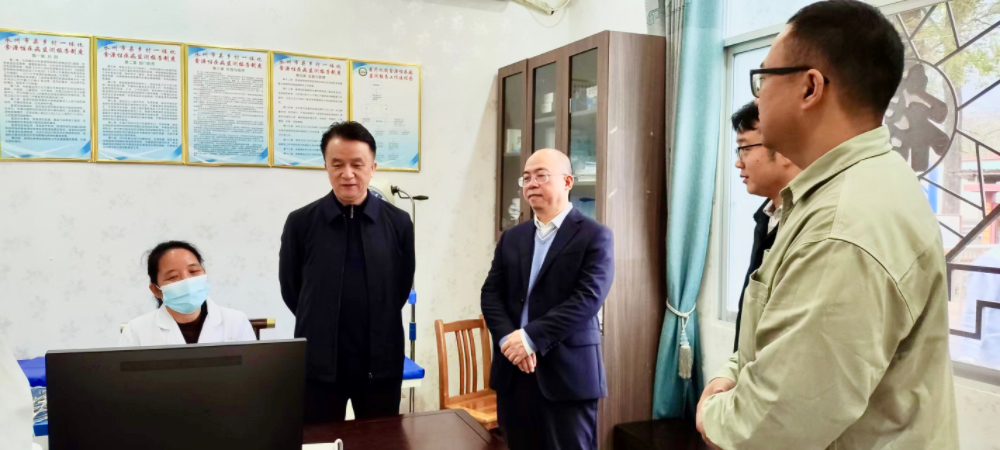 图6:何庆南、张劲强等在长山村指导村卫生室建设