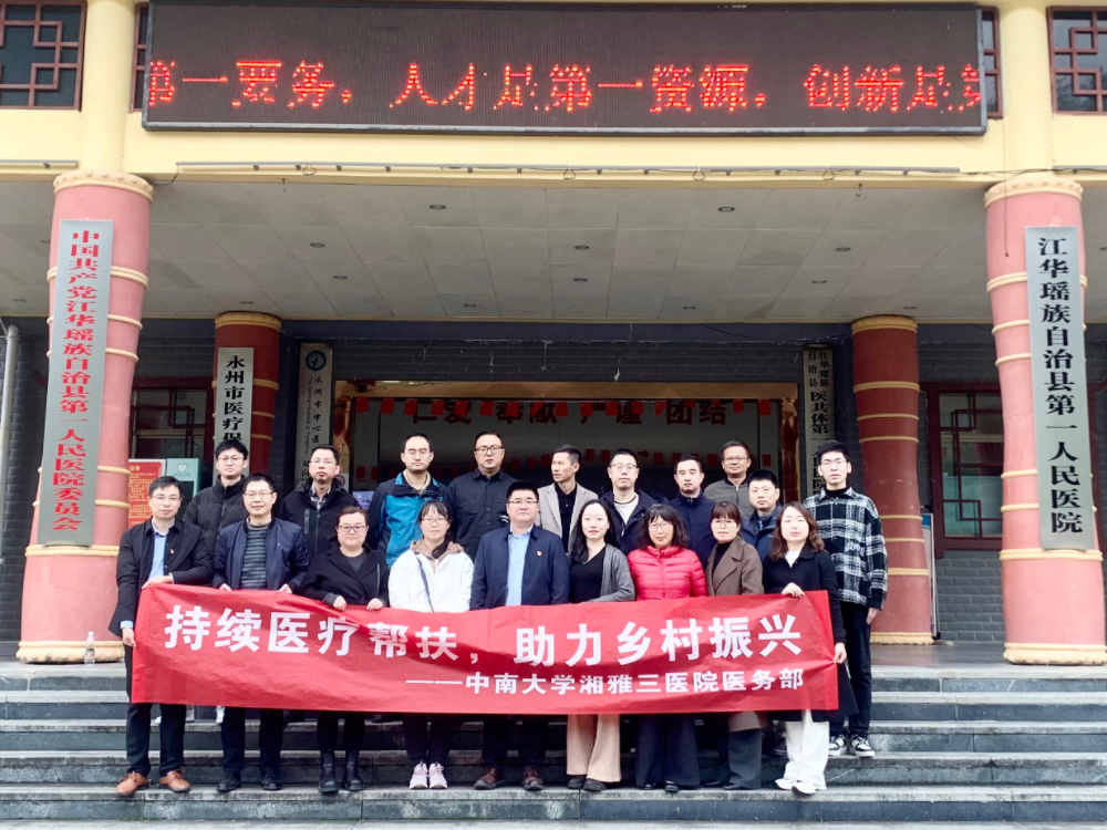 11月29日-12月1日,由中南大学湘雅三医院党委书记何庆南,党委副书记、纪委书记张劲强带领的帮扶团在江华县开展系列帮扶活动。党委办公室主任许泽华、医务部副主任刘作良、临床心理科主任医师唐秋萍、护理部科护士长卜平元、医院感染控制中心副主任周鹏程、急诊科副主任医师岑超群、医务部帮扶专干王莎亚参加了此次活动。