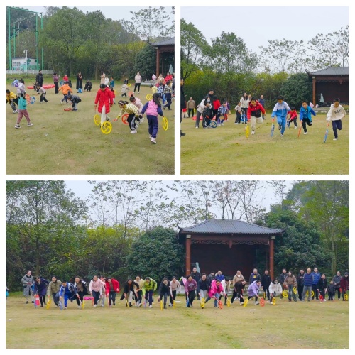 到达拓展基地后,在教练的指导下,大家进行团队破冰,职工会员及家属们借此相互熟悉,舒展一下筋骨。在陏后的同舟共济、袋鼠运瓜、滚滚向前趣味亲子活动中,孩子和父母共同积极参与。平日里工作忙碌的爸爸妈妈,当天全心全意地陪同孩子,一起游戏、一起挑战,一起分享。气氛在全体人员滚铁环比赛达到高潮。滚铁环更是勾起了大家儿时的美好的回忆。拿到铁环后,孩子们迫不及待地学习、练习,家长们则在一旁示范、指导与鼓励。所有小朋友按年龄、身高、性别分组比赛,随着教练一声“出发”,一众孩子们滚着铁环飞奔向前,爸爸妈妈们在旁边呐喊、加油,比赛赢了的小朋友兴奋地领取奖品,也有小朋友因为没有拿到奖品而心有不甘。轮到家长们比赛,一众爸爸妈妈纷纷拿出自己的看家本领,为自己孩子的奖品而拼博,现场爆发出阵阵喝彩声。