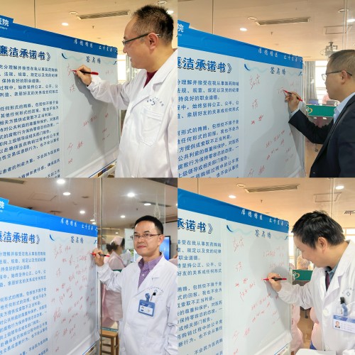 活动开始前,全科医护人员在第三党总支耳鼻咽喉头颈外科党支部书记李和清教授、副书记王天生教授、“白求恩式好医生”刘火旺副教授的带领下,庄重严肃地签署了廉洁行医倡议书,向医院和人民郑重承诺:遵纪守法,努力做好医疗服务。