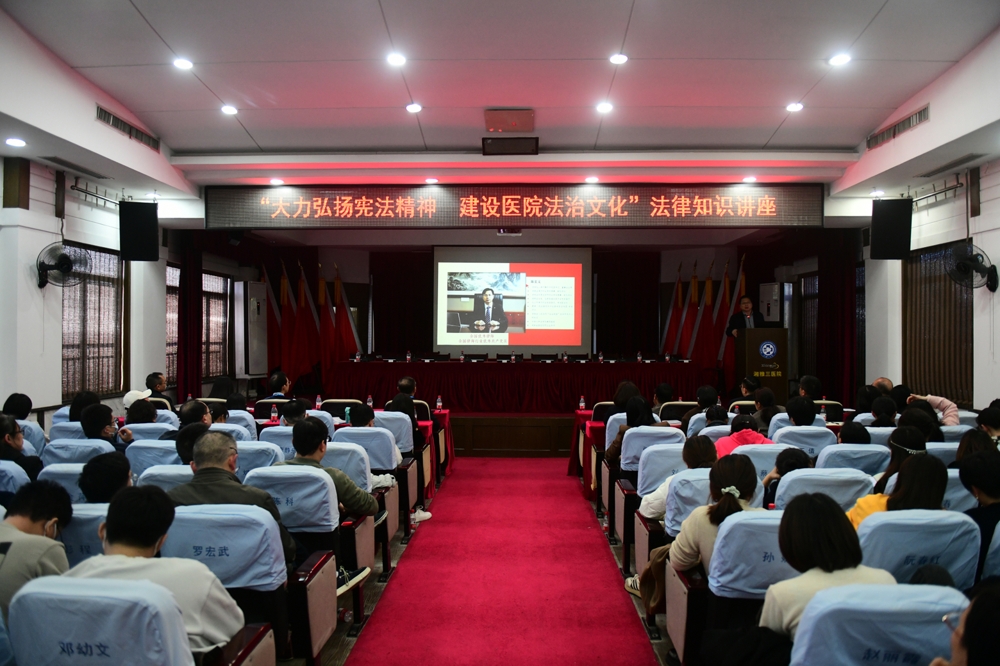12月7日下午,中南大学湘雅三医院开展“弘扬宪法精神 建设医院法治文化”法律知识专题讲座。医院全体院领导、中层干部300余人参加讲座,医院党委副书记、纪委书记张劲强主持。