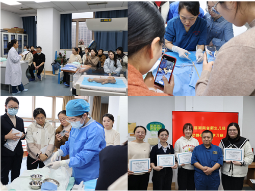 经脐动静脉的中心动静脉置管术是新生儿危重症监护病房的关键救治技术之一,湘雅三医院儿科NICU已经成功举办五届学习班,为了保证培训质量,每一期培训班都采取小班制教学,现已为湖南省各地州市的150余名学员进行了培训与考核,为提高基层医务人员医疗水平和危重症新生儿救治成功率发挥了重要作用。