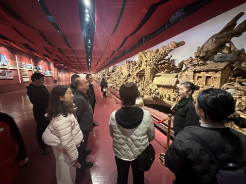 首先,大家来到了益阳市天意木国展览馆,跟随讲解员的讲解,走入了木文化的绚丽世界,依次参观了迎客厅、传统文化馆、新时代厅等6个展厅,馆内上千件根雕作品让大家叹为观止。在讲解员的带领下,大家一边欣赏着精美的根雕艺术品,一边倾听根雕作品背后的历史故事,在耳濡目染、潜移默化中接受匠人精神的洗礼与熏陶,被这些作品所展现出的精湛技艺和中华民族的文化自信与文化传承所吸引。尤其在红军长征根雕文化馆,以红军“二万五千里长征”为主题的大型根雕作品吸引了职工们的目光,大家看到了红军战士们在长征途中经历的艰难险阻和牺牲奉献,感受到了中国革命事业的艰辛和伟大,并表示要继续关注和支持红色文化事业的发展,为实现中华民族伟大复兴的中国梦而不懈奋斗。