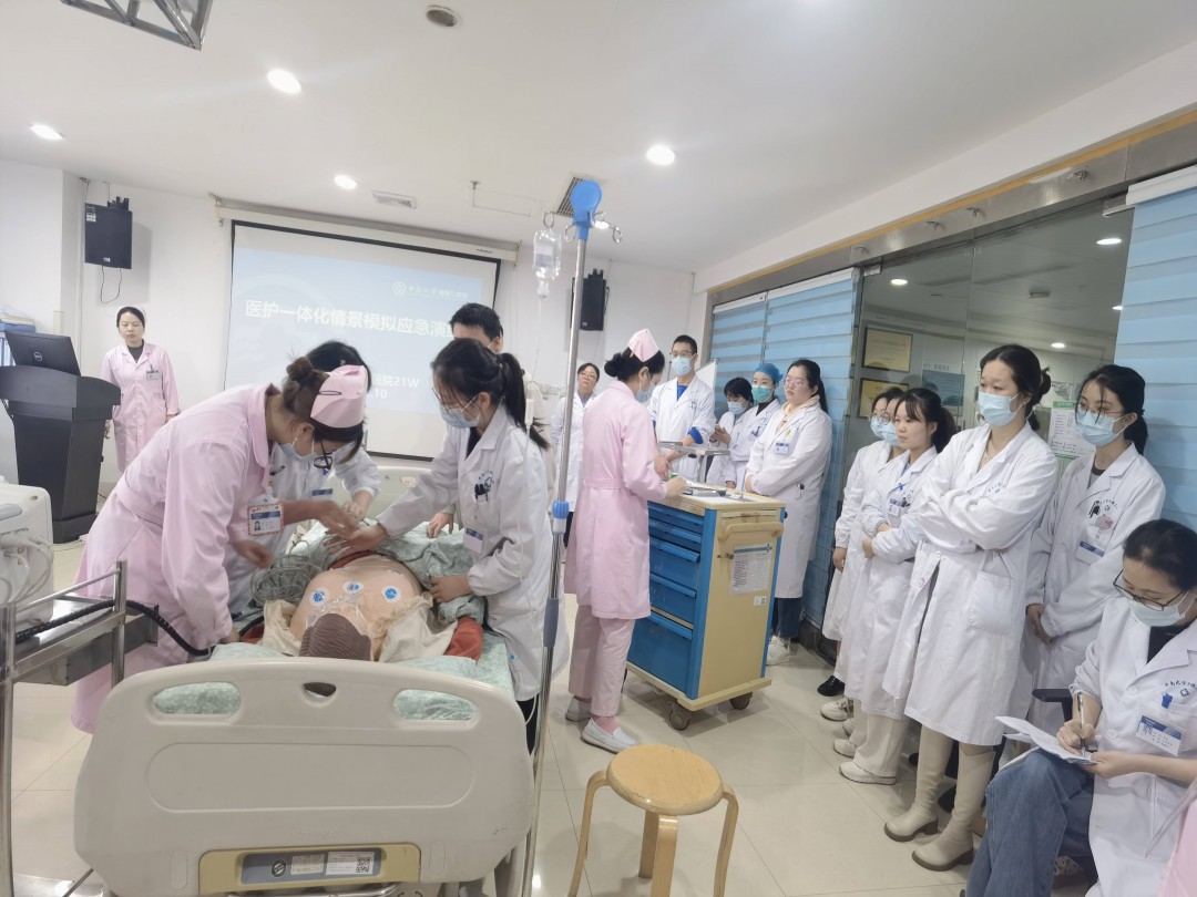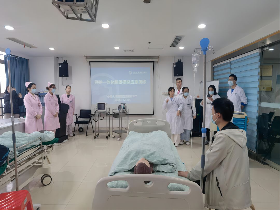 12月10日,中南大学湘雅三医院妇科21病区医护一体化情景模拟应急演练在外科楼11楼示教室顺利开展,妇科副主任孙信、二十一病区(妇科)护士长戴婵媛,以及妇科叶明珠副教授现场指导,科室医护人员及实习同学参与演练,由应急培训组长邓汝心组织。