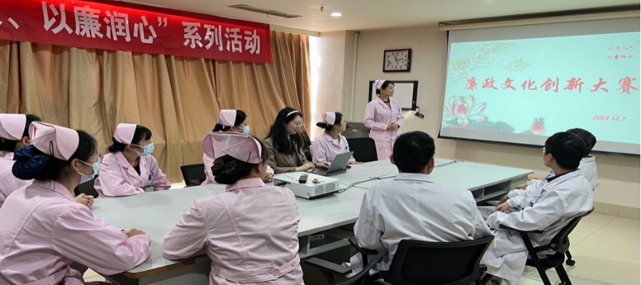 为深入学习贯彻党的二十大精神,落实落细中央关于加强新时代廉洁文化建设要求,进一步丰富廉洁文化宣传教育形式,12月12日,中南大学湘雅三医院胃肠外科Ⅱ科在外科楼18楼示教室开展“以文化人,以廉润心”廉政文化创新大赛,该活动为医院纪委监察办公室廉政文化创新项目之一。医院第四党总支书记孙慧蓉、胃肠外科Ⅱ科主任易波以及科室医护人员近18人参加。护士长孙林丽主持比赛。