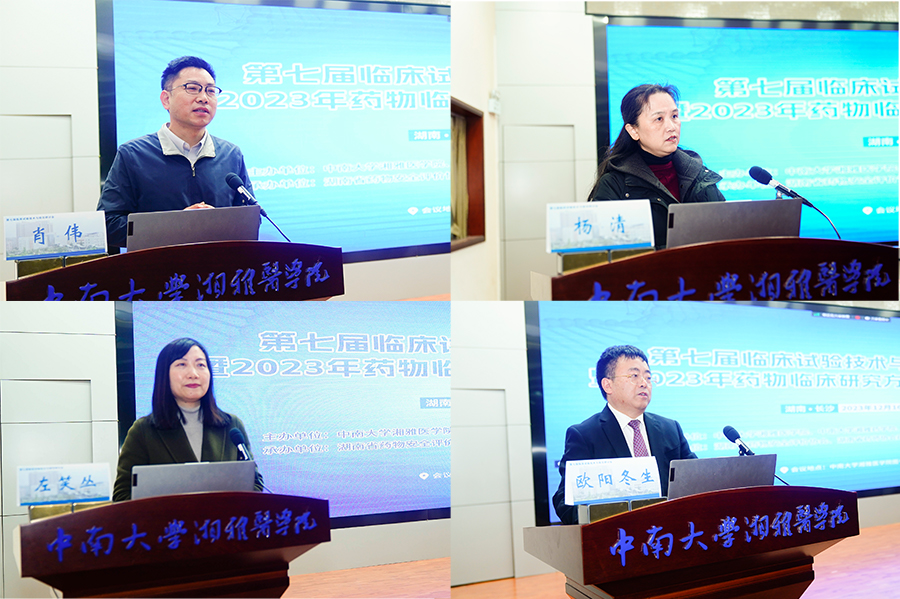 12月16日至17日,由中南大学湘雅医学院、湘雅药学院和湘雅三医院联合主办,湖南省药物安全评价协会、湖南省药师协会药物临床试验质量管理专业委员会承办的“第七届临床试验技术与规范研讨会暨2023年药物临床研究方法与实践研讨会”在长沙成功举办。湖南省卫健委科教处处长肖伟,省药品监管局药品注册管理和科技处处长杨清,省药品审核查验中心核查一部部长管志美,中南大学湘雅三医院副院长左笑丛,湖南省药师协会会长欧阳冬生以及湖南省药师协会秘书长欧阳湘蓉出席开幕式。中南大学湘雅药学院副院长阳国平和中南大学湘雅医学院副院长黄志军任大会主席。此次会议吸引了来自医疗机构、申办者和CRO等600多位同仁参会交流。