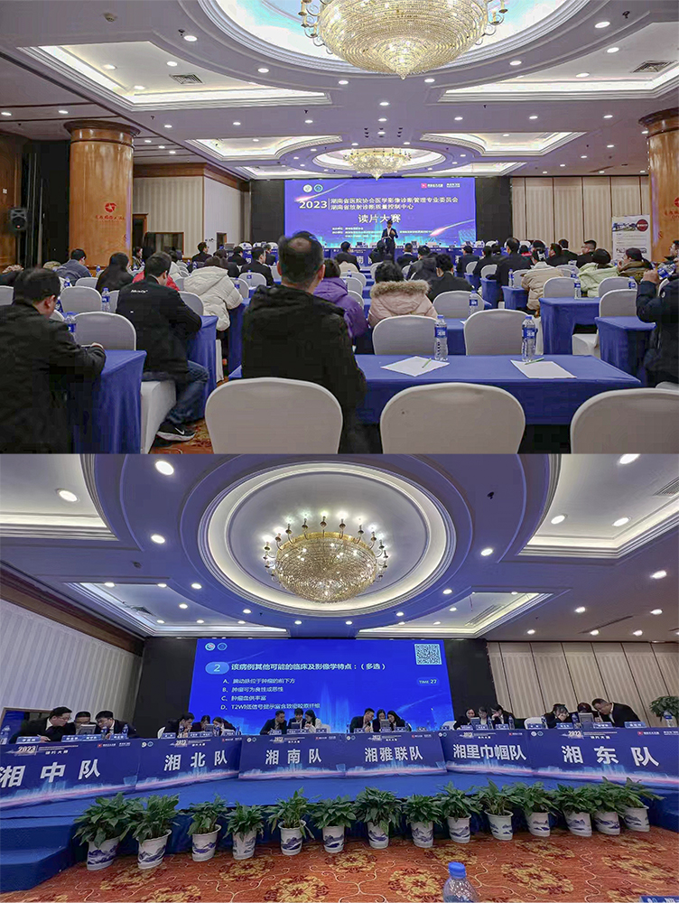 自大赛启动以来,全省医疗机构放射科医务人员积极报名参赛,经过重重选拔,最终各确定了6支代表队进入决赛,中南大学湘雅三医院放射科派出了以谭伏平主管技师及刘琴主治医师为代表作为湘雅联队队员参赛。其中对比剂不良反应处理参赛队由医生、技师、护士组成,分为理论答题和操作考核两部分,充分考察了放射科医务人员对处理对比剂不良反应相关工作的理论知识、规范指南的掌握情况及医技护协同处理对比剂不良反应的能力。读片比赛为积分制,分为病例盲读演讲及病例题答题两部分,强化了理论与实践相结合。